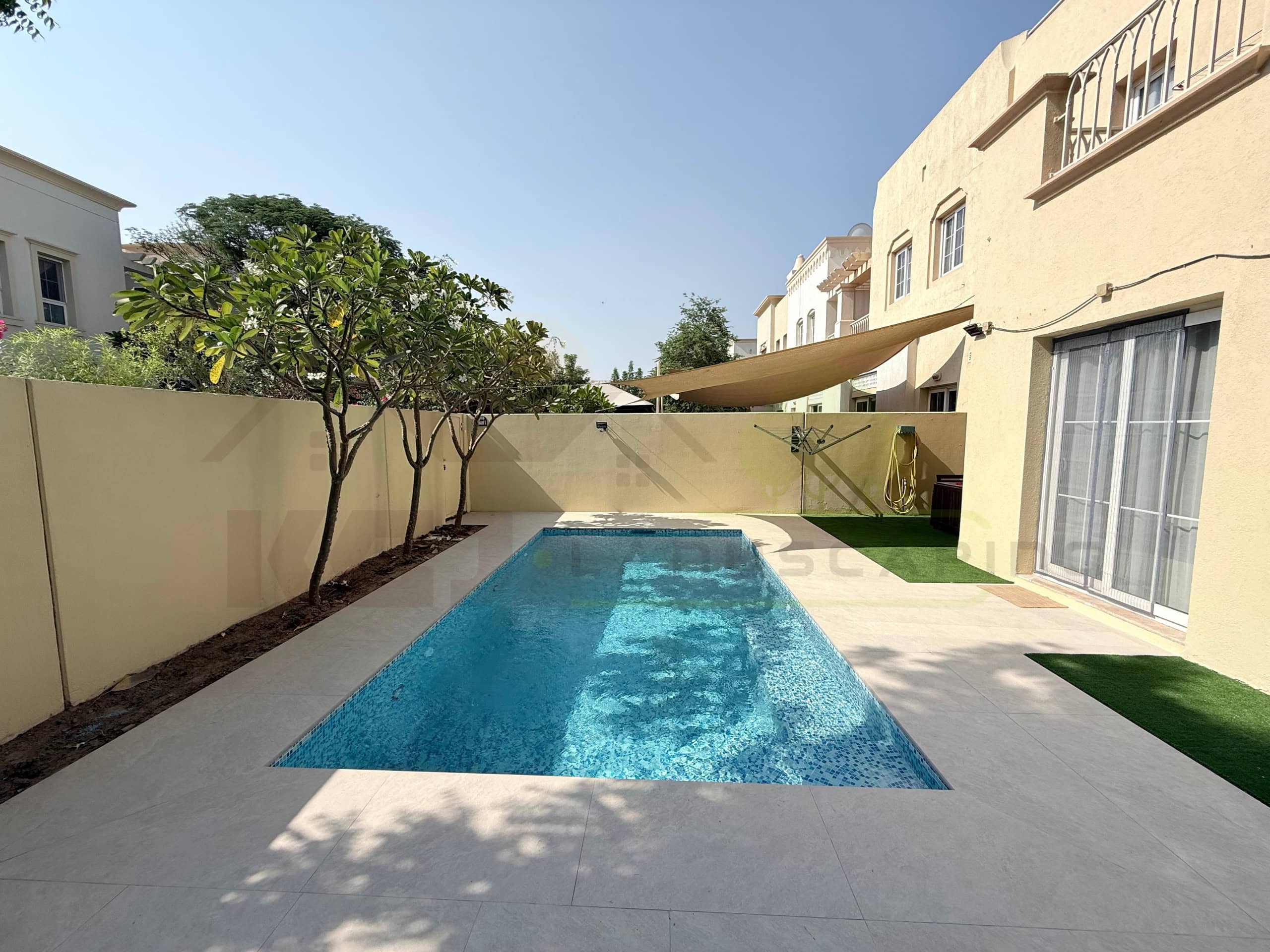 The successful completion of this project in the Emirates Living (Springs 6) Community has significantly enhanced the outdoor living space of the property. The integration of a Swimming pool, outdoor tiling and Artificial grass has created a aesthetically pleasing, and low-maintenance environment for the client to enjoy.